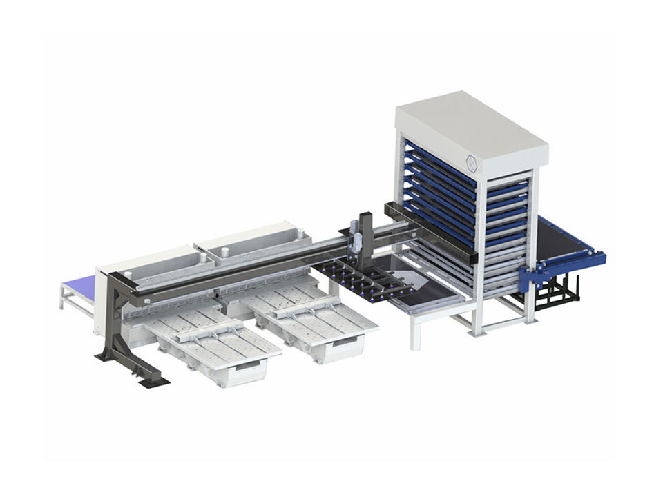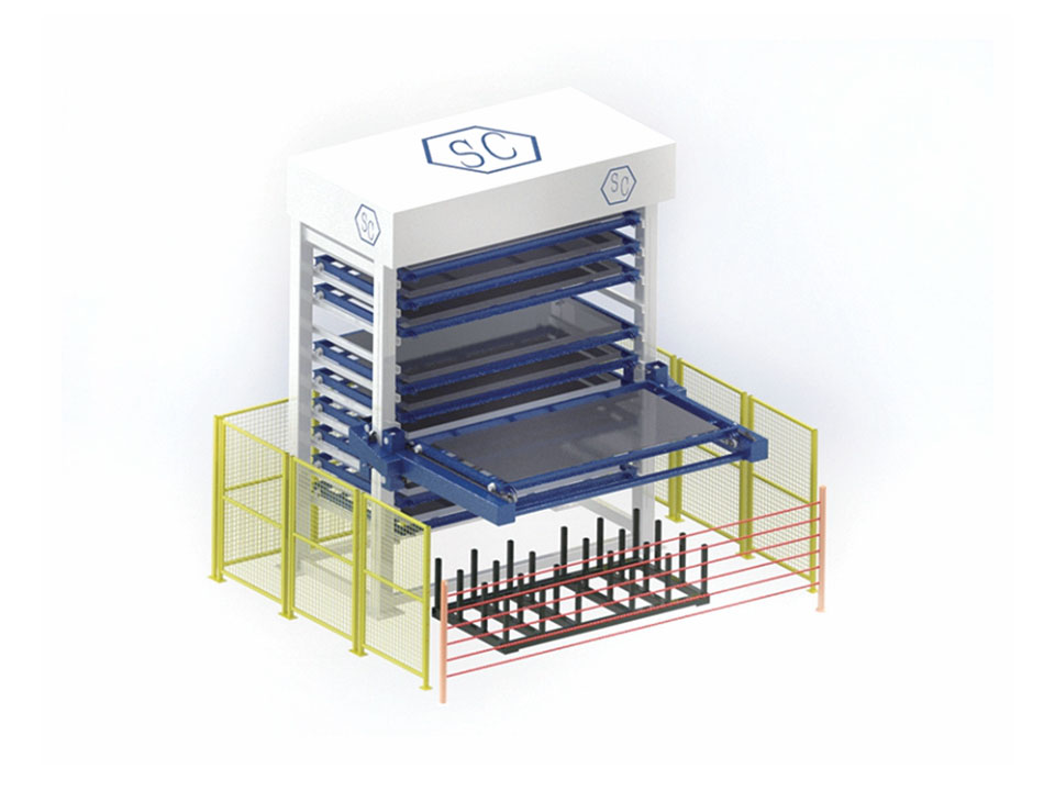 鈑金智能儲(chǔ)料庫(kù)用于分類儲(chǔ)存各類金屬板材,通過(guò)電腦控制板材的進(jìn)出、選取各層板材,與企業(yè)的MES系統(tǒng)相連接,為